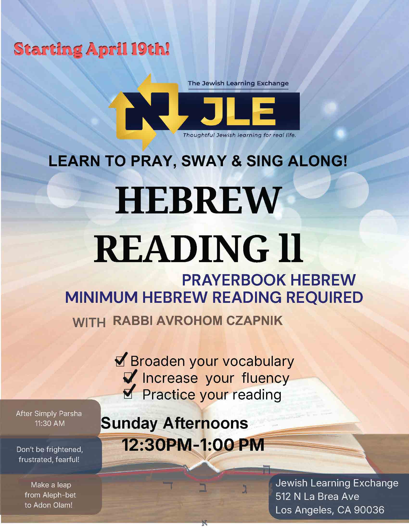 Prayerbook Hebrew ~ Weekly Class